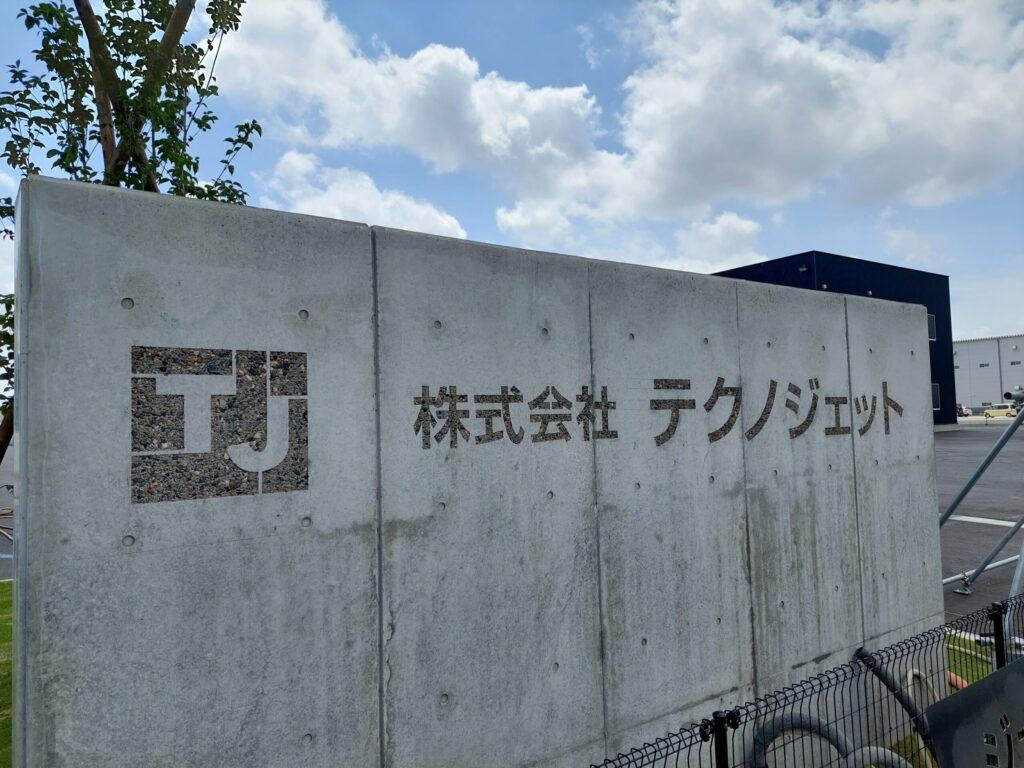 敷地入口の擁壁に、ウォータージェットで会社名を刻印いたしました。